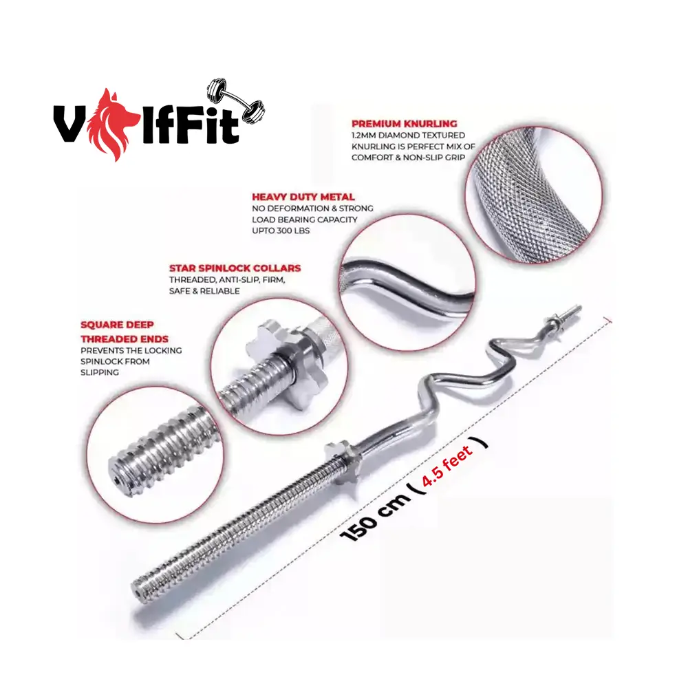Enhance your upper body training with the Volffit 4.5ft Spinlock EZ Curl Bar, built for serious lifters who want better form, grip comfort, and muscle isolation. Made from high-quality chrome-plated steel, this bar features an ergonomic zig-zag (EZ) design to reduce wrist strain during curls and extensions.