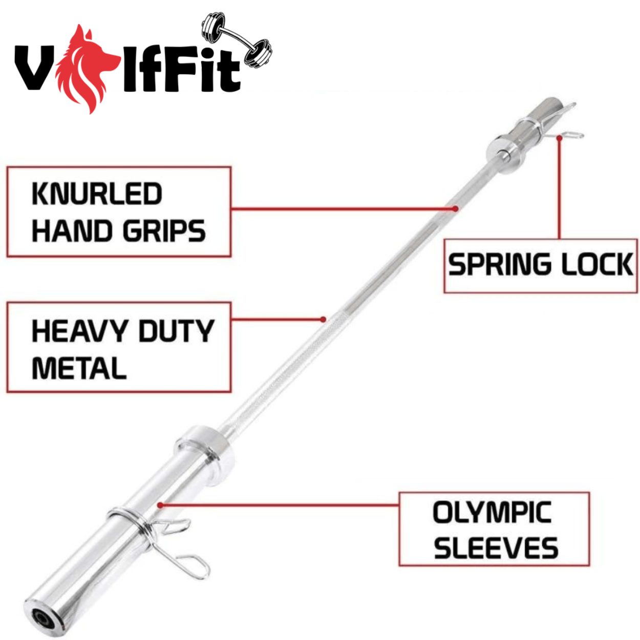 Take your strength training to the next level with the VolfFit 6′ Feet Premium Quality Olympic Rod. Designed for both home gyms and professional fitness centers, this Olympic rod is engineered with solid steel construction, anti-slip knurled grip, and smooth rotation sleeves for the best lifting experience.